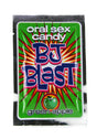 For an unforgettable oral sex experience, fill your mouth with BJ Blast before heading down, it's a fizzy, popping, bursting treat with a deliciously sweet taste. If you've eaten pop rocks candy, you'll recognize the sensation on your tongue; it does, however, have a much subtler result for an exciting, uniquely stimulating addition to a classic sex act. Package contains 18 grams (.035oz).
