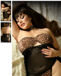 Use your animal instincts to lure in your lover in this sexy plus size babydoll set featuring semi-sheer animal print cups with a small keyhole, a strapless style, a sheer mesh bodice, a satin tie back closure with a flyaway detail, a matching g-string, and a sassy choker with an optional front or back lace-up tie closure.