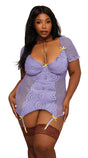 PURPLE PLUS SIZE BOW GARTERED CHEMISE SIZE 2XL is backordered and will ship as soon as it is back in stock.