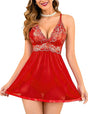 - Women lace babydoll sleepwear featuring sheer floral lace cups with a V-neck, adjustable spaghetti straps, a lace underbust band, open back, a mesh skirt with a satin trim, emphasizes your breasts and shows off your charming curves.