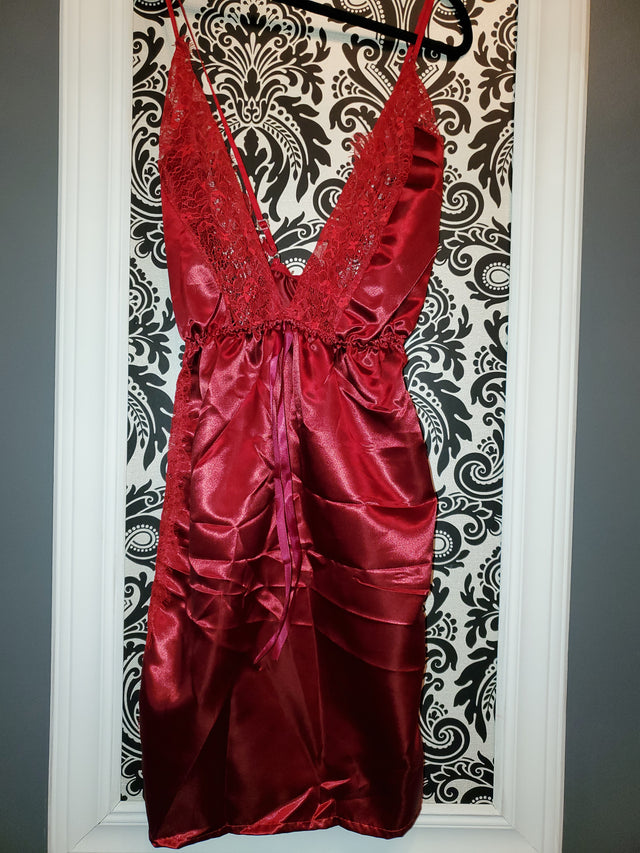 Red Satin With Eyelash Lace Trim Babydoll in 3XL