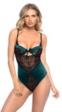 Satin And Lace Underwire Teddy in Everglade L/XL