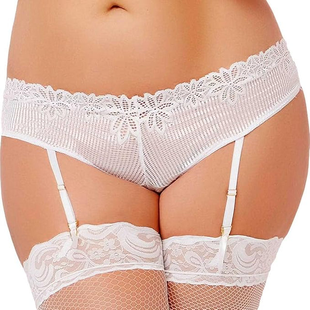 Tropical galloon lace open crotch panty with lace-up back and garters