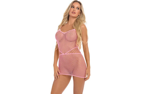 Pink Lipstick Roll Up Net Mini Dress O/S