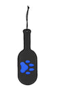 This vegan leather paddle sports a red puppy paw imprint on one side and smooth plain side on the other. Comes with a wrist loop/hanging strap.