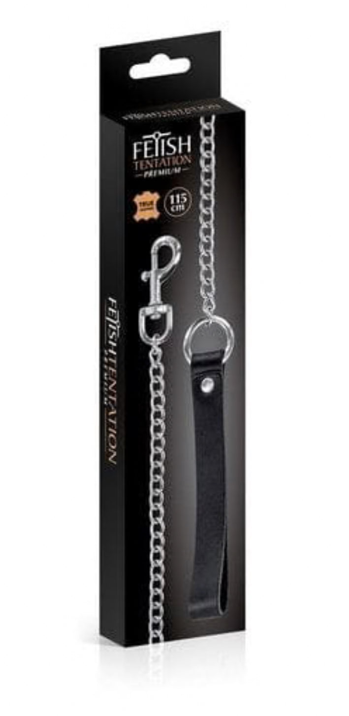 Fetish Tentation Premium Metal Leash with Leather Handlefor your BDSM games. This leash relies on quality with metal link leash finished with a very sturdy leather handle that is comfortable for the hand. A fetishist leash with a length of 115cm with a carabiner to attach to a collar.