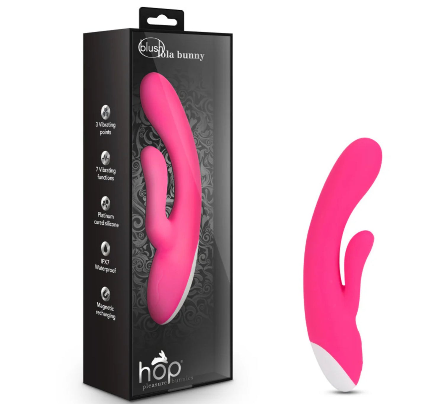 Seductively powerful, the Hop Lola Bunny has 3 flexible vibrating points for clitoral and G spot pleasure. The two clitoral arms with a vibrating point at each end provide extra stimulation. Lola Bunny features 7 strong, deep, rumbly vibrating functions: 3 speeds and 4 patterns. UltraSilk™ smooth and made with Puria™ platinum-cured silicone, the Lola Bunny is body safe, phthalate-free, IPX7 waterproof and easy to clean. USB rechargeable, eco friendly, and no batteries required. Enjoy peace of mind with our 5 year no hassle warranty